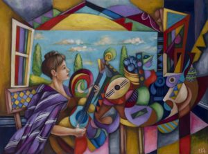 Pat had painted off and on for most of her life. Her style might be called Magic Realism.